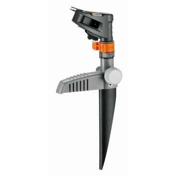 De Gardena Spike sector- en cirkelsproeier kunststof 44×17,5×6,5cm is een stevige sproeier voor oppervlakten tot maximaal 490m2. Op de speciaal gemonteerde stelring kunt u eenvoudig instellen waar u wilt dat er gesproeid wordt. De sproeihoek varieert van 25 tot 360 graden. Middels de grote draaiknop is het bereik van de sproeier aan te passen. De sproeikop zelf wordt op een kunststof spike gemonteerd, die op zijn beurt eenvoudig in het gazon kan worden geplaatst. Dankzij de Gardena system verbindingsstukken kunt u meerdere van dezelfde Gardena Spike sectorsproeiers aan elkaar koppelen voor grotere oppervlakten.